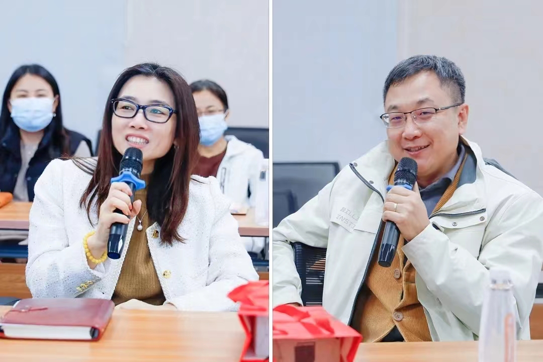 ▲新領(lǐng)先總裁助理兼綜合信息部總監(jiān)劉芳女士(左)、藥酚享李媛老師(右)分別代表雙方作工作總結(jié)匯報(bào)
