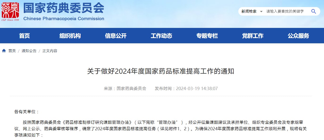 關(guān)于做好2024年度國(guó)家藥品標(biāo)準(zhǔn)提高工作的通知