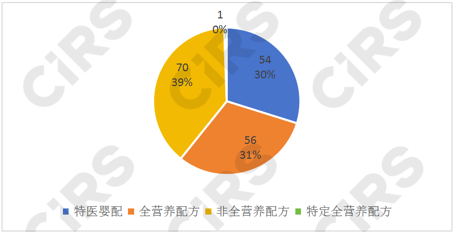 目前,已獲批產(chǎn)品中有54款為特殊醫(yī)學(xué)用途嬰兒配方食品,占到了總數(shù)的30%,包括5款乳蛋白深度水解配方或氨基酸配方、11款乳蛋白部分水解配方、15款無乳糖或低乳糖配方、1款氨基酸代謝障礙配方、17款早產(chǎn)/低出生體重嬰兒配方、5款營(yíng)養(yǎng)補(bǔ)充劑;70款為非全營(yíng)養(yǎng)配方食品,包括21款蛋白質(zhì)組件、1款脂肪組件、18款碳水化合物組件、23款電解質(zhì)配方、2款增稠組件、3款流質(zhì)配方、2款氨基酸代謝障礙配方(1歲以上),占總數(shù)的39%;56款為全營(yíng)養(yǎng)配方食品,占總數(shù)的32%,包括9款全營(yíng)養(yǎng)配方食品(1-10歲)和47款全營(yíng)養(yǎng)配方食品(1歲以上);特定全營(yíng)養(yǎng)配方食品僅有1款,為速熠素特殊醫(yī)學(xué)用途腫瘤全營(yíng)養(yǎng)配方食品。