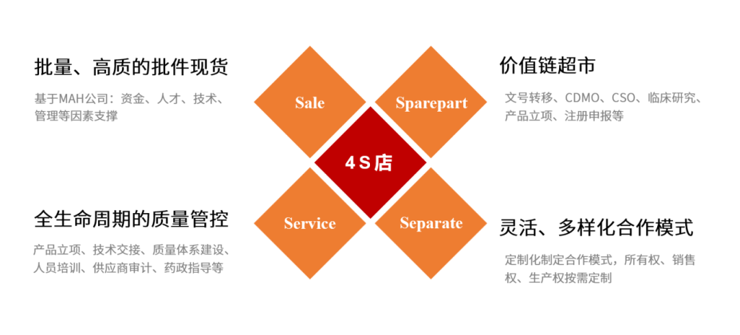 2019 年修訂的《藥品管理法》中全面實(shí)施藥品上市許可持有人(MAH)制度,并將其作為基本制度、核心制度,貫穿于《藥品管理法》。隨著MAH制度的不斷深入,MAH 4.0時(shí)代應(yīng)運(yùn)而生,從單純的批件轉(zhuǎn)讓變?yōu)槎嘣?ldquo;4S”立體服務(wù)。