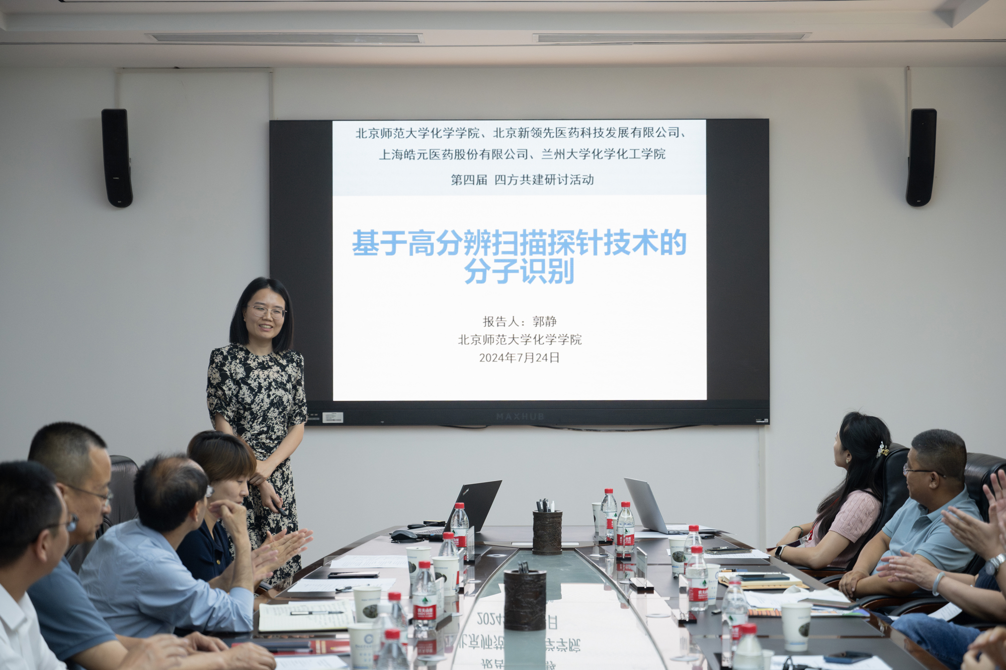 新領(lǐng)先醫(yī)藥董事長(zhǎng)陶新華先生、副總裁張容火先生、副總裁董穎女士、高級(jí)培訓(xùn)經(jīng)理?xiàng)顣?huì)軍先生、醫(yī)學(xué)經(jīng)理李夢(mèng)琪女士,蘭州大學(xué)副校長(zhǎng)、功能有機(jī)分子化學(xué)國(guó)家重點(diǎn)實(shí)驗(yàn)室主任王為先生,蘭州大學(xué)化學(xué)化工學(xué)院黨委書(shū)記杜生一先生、院長(zhǎng)梁永民先生,北京師范大學(xué)化學(xué)學(xué)院黨委書(shū)記楊釗女士,上海皓元醫(yī)藥股份有限公司高級(jí)副總裁楊紹波先生等三十余人出席本次活動(dòng)。