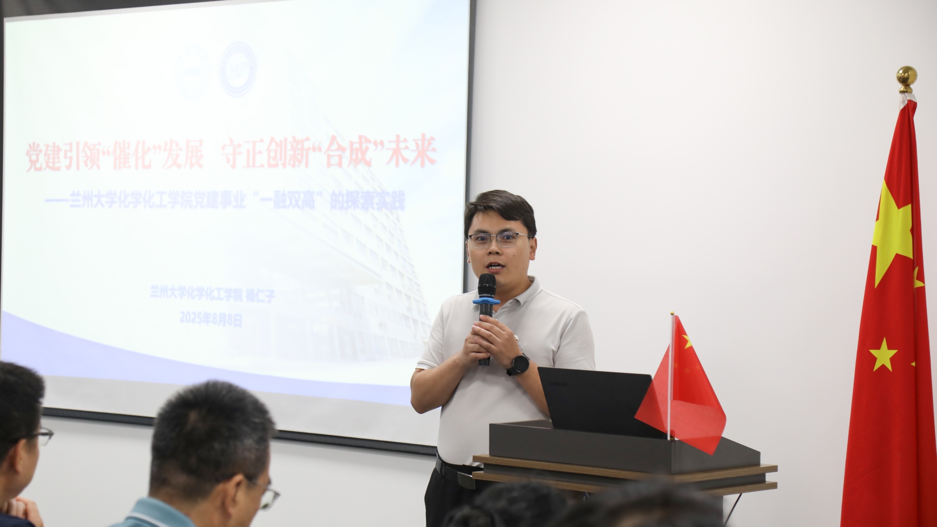 蘭州大學化學化工學院黨委副書記楊仁子帶來《黨建引領“催化”發(fā)展,守正創(chuàng)新“合成”未來》分享。他以化學領域的“催化”“合成”等專業(yè)概念為喻,探討了黨建工作中如何將黨組織的政治優(yōu)勢轉(zhuǎn)化為人才培養(yǎng)、學科發(fā)展動力的關(guān)鍵議題。