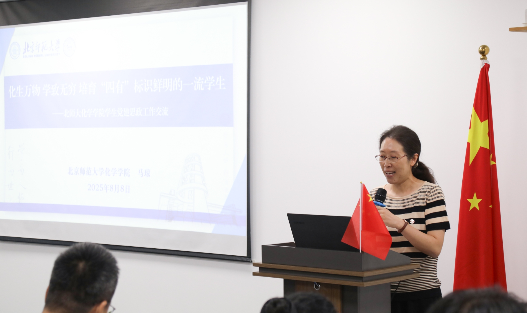 北師大化學學院黨委副書記馬瓊作《化生萬物,學致無窮,培育“四有”標識鮮明的一流學生》報告闡述,分享了學院以黨建為引領,通過構(gòu)建第一、第二課堂協(xié)同育人模式,培養(yǎng)學生明辨力、學習力、溝通力、創(chuàng)新力、成長力“五力”的經(jīng)驗。