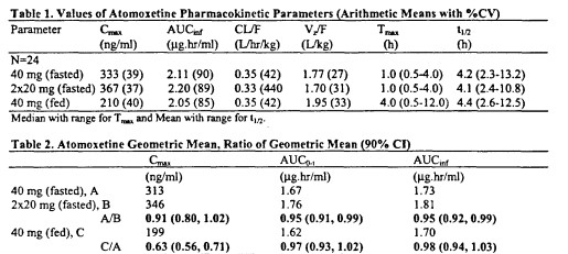 筆者認(rèn)為FDA綜述對(duì)于臨床研究公布的更為詳細(xì),報(bào)告中會(huì)匯總原研開發(fā)過(guò)程中所進(jìn)行的各種臨床試驗(yàn),包括不同劑型的藥動(dòng)學(xué)研究;處方變化的生物等效性研究;食物對(duì)于藥物吸收的影響;不同人群吸收的影響等,下面以托莫西汀膠囊為例,解讀相關(guān)文獻(xiàn)。