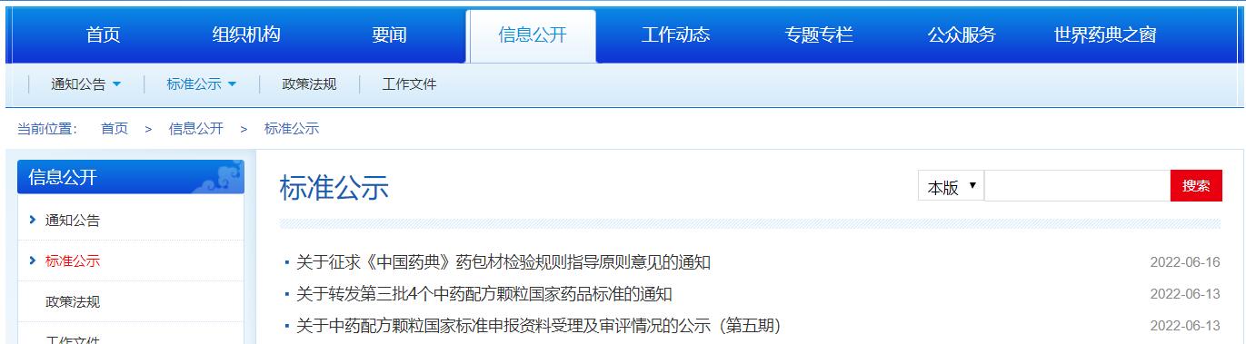 本周藥典委發(fā)布1個關(guān)于中藥配方顆粒國家標(biāo)準(zhǔn)申報資料受理及審評情況的公示(第五期),1個第三批4個中藥配方顆粒國家藥品標(biāo)準(zhǔn)的通知,1個征求《中國藥典》藥包材檢驗規(guī)則指導(dǎo)原則意見的通知。