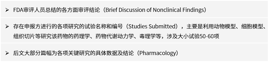 FDA審評報告中一般包含研究內(nèi)容的報告如下:化學審查報告、藥理學審查報告、臨床藥理學/生物藥劑學審查報告、醫(yī)學審查報告等。