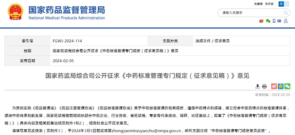 本周國(guó)家藥典委共發(fā)布5個(gè)國(guó)家藥品標(biāo)準(zhǔn)草案的公示,5個(gè)國(guó)家藥品標(biāo)準(zhǔn)修訂草案的公示。