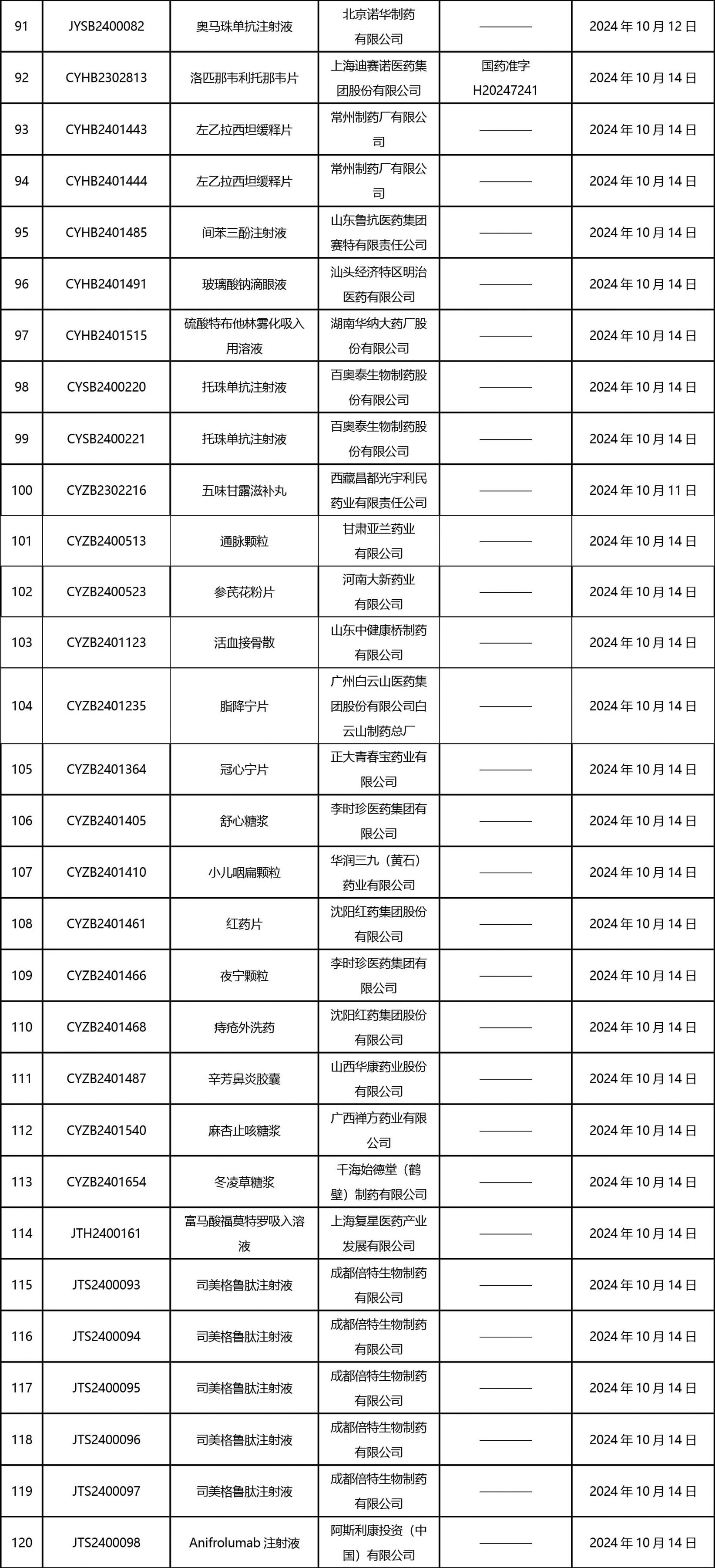 截止2024年10月18日 15:00本周發(fā)布161個待領取藥品批準證明文件,其中注射液84個,一致性評價品種30個。