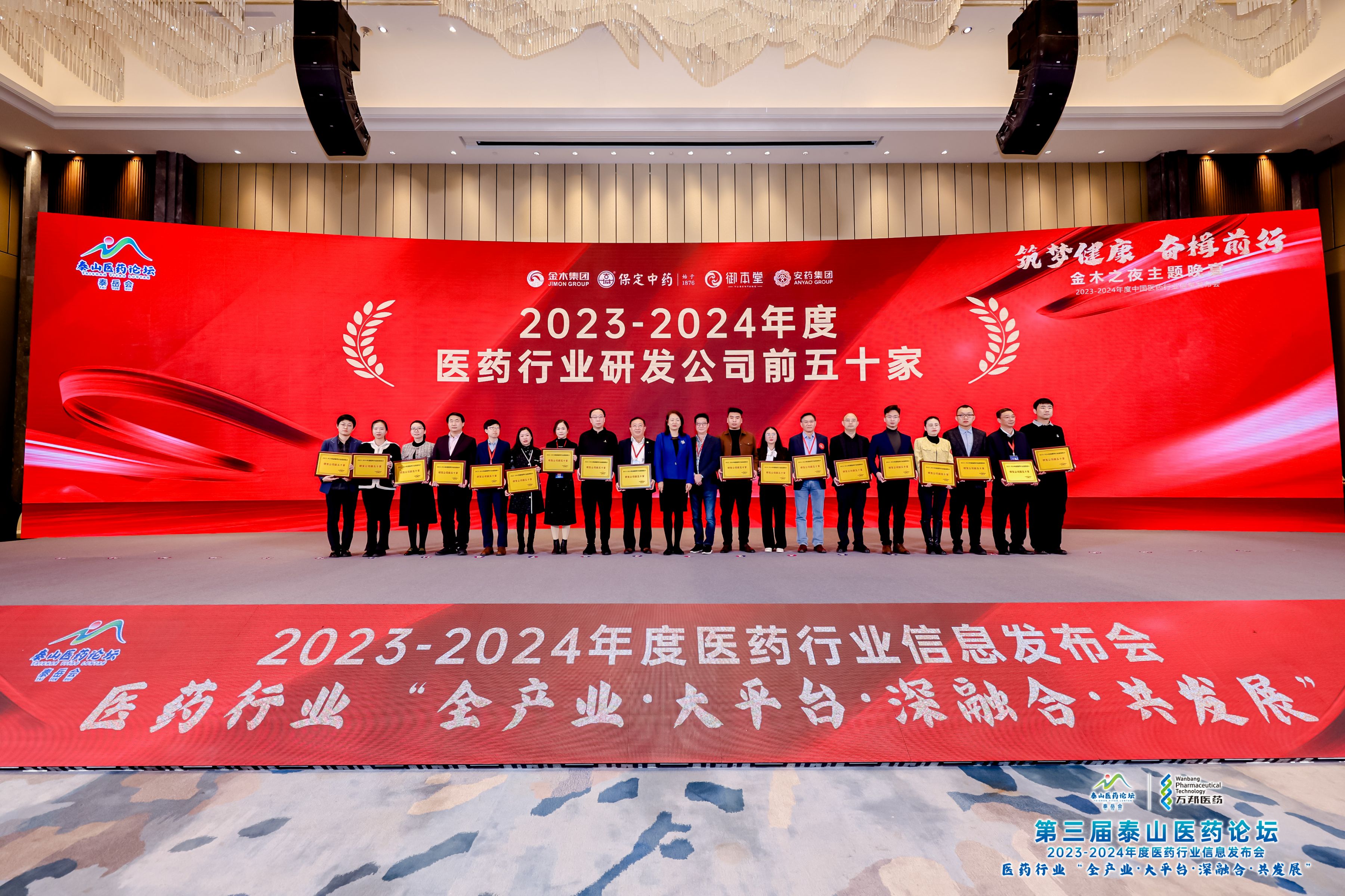 From November 4 to 6, 2024, the 3rd Taishan Pharmaceutical Forum and the "2023-2024 Pharmaceutical Industry Information Conference" were successfully held in Jinan, Shandong. At this forum, Leadingpharm, with its outstanding R&D strength and industry influence, won honors such as "Top 50 R&D Companies" and "Law-Abiding and Integrity Enterprises" in the pharmaceutical industry for 2023-2024.